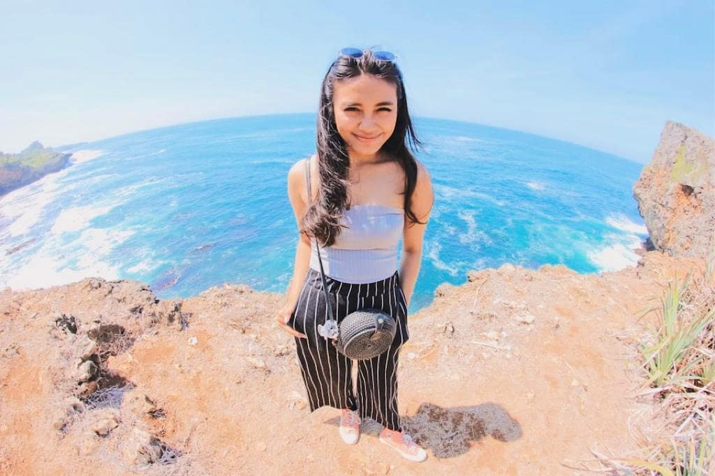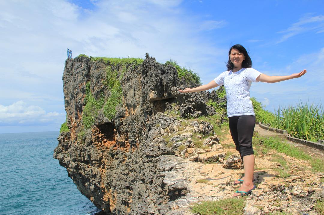Setelah puas trekking dan memandangi batu karang di pinggir tebing, pengunjung bisa turun dan bermain-main di bibir pantai.