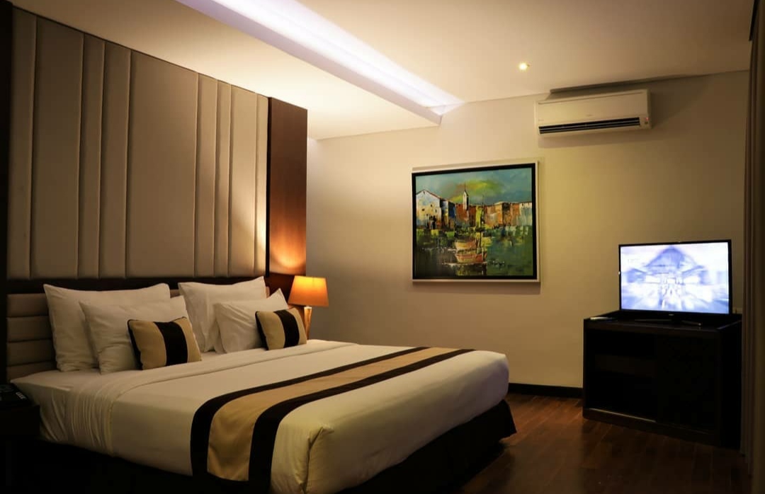 Kamar-kamarnya yg luas dilengkapi mebel yang elegan dan berbagai fasilitas pendukung lainnya seperti AC, TV layar datar, meja kerja, minibar, bathub serta perlengkapan mandi gratis.