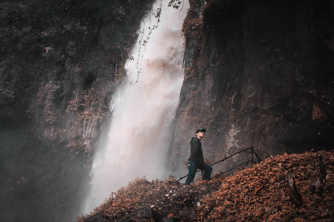 Air yang jatuh dari atasnya sangatlah deras, sampai menghantam keras batu-batu di bawahnya.