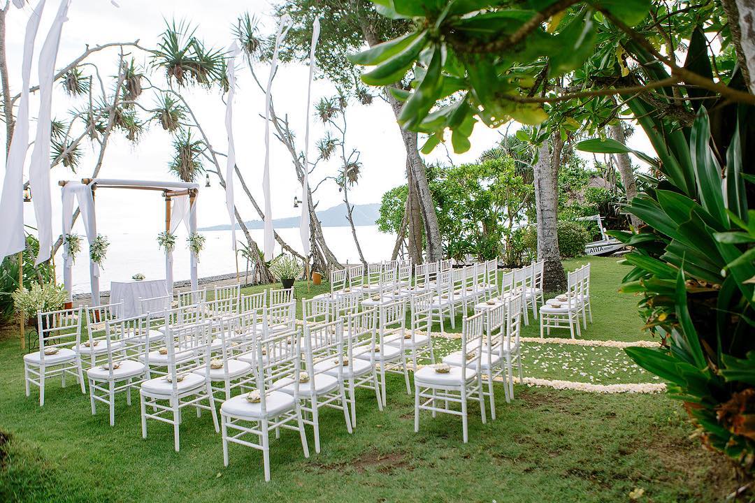 Untuk pernikahan eksotis, Alila Manggis menawarkan area wedding di lanskap tropis yang diapit oleh kebun kelapa, halaman rumput luas dan asmara laut.
