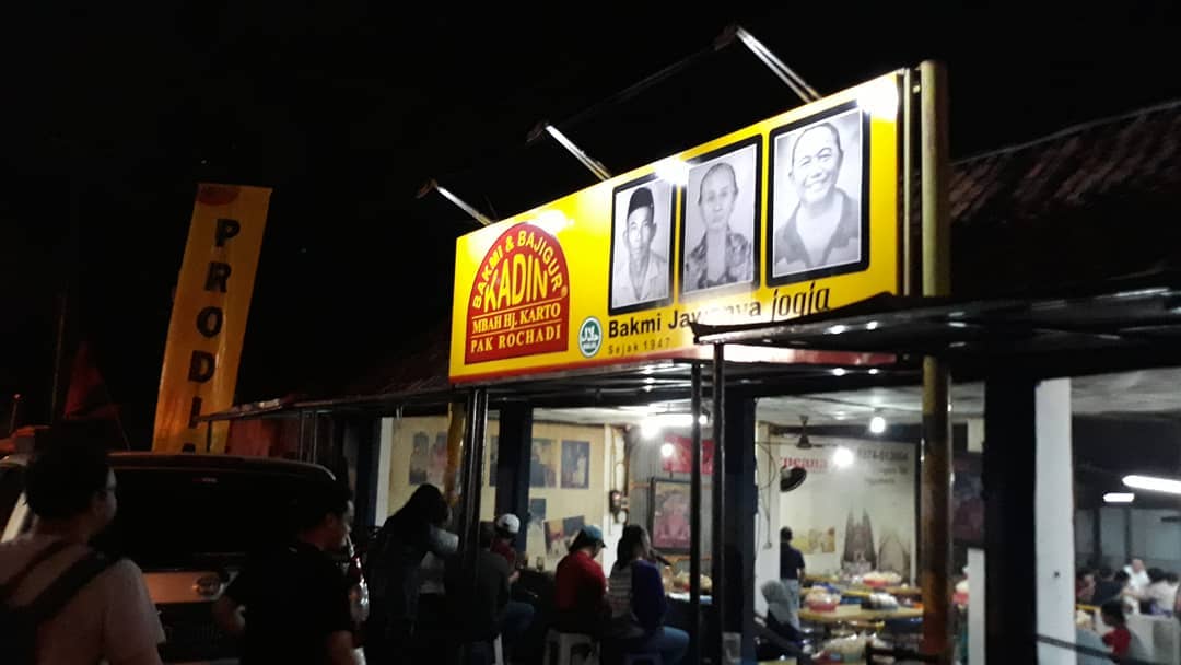 Warung Bakmi Hj. Karto atau orang lebih sering menyebutnya sebagai Bakmi Kadin ini memang memiliki penggemar dimana-mana. Penyematan nama Kadin itu karena lokasi warung bakmi ini berada di dekat Kantor Kamar Dagang dan Industri (Kadin) Yogyakarta.