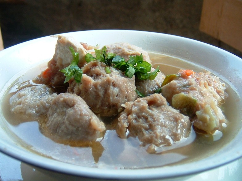 Bakso yang satu ini memang memiliki keunikan dibandingkan bakso lainnya. Biasanya kalau membeli bakso, Anda akan menemukan bakso berbentuk bulat, tapi berbeda dengan disini bakso dibalut dengan adonan bakso sehingga bentuknya tidak bulat tapi oval.