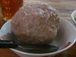 Bakso jumbo di kedai bakso yang satu ini tidak main-main ukurannya, bahkan layak jika disebut sebagai bakso raksasa sebab ukurannya sebesar mangkok yang biasanya digunakan untuk menyajikan seporsi bakso.