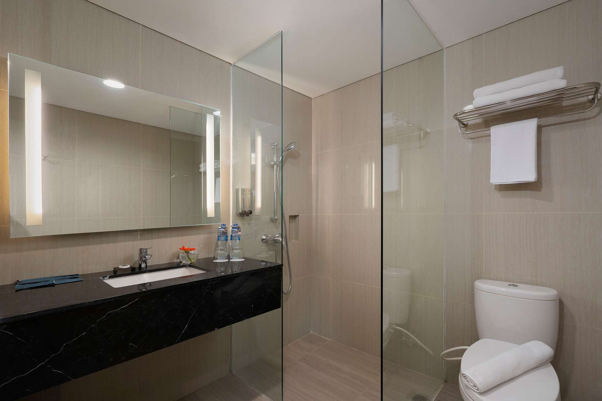 Fasilitas lain yang bisa kamu nikmati di dalam tipe kamar ini meliputi meja kerja, televisi, pendingin ruangan, alat pembuat teh dan kopi, kulkas, air mineral kemasan, dan sebagainya.