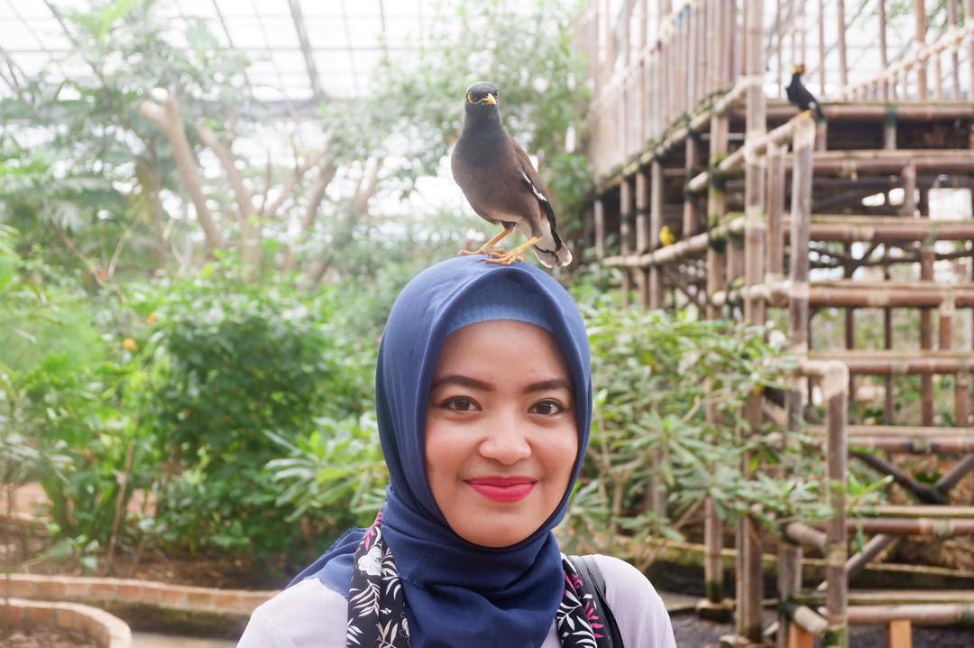 Setelah puas melihat-lihat binatang-binatang lain yang menjadi koleksi Bird Park Palembang, tiba saatnya bermain dengan burung-burung.