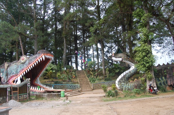 Ada satu bangunan yang mirip dengan binatang ular dan bentuknya seperti ingin ‘melilit’ bukit dengan ekor dan kepalanya yang hampir saling menyentuh.