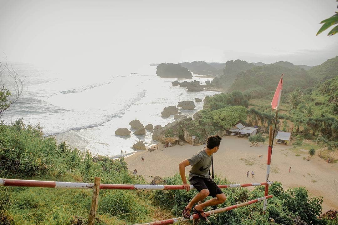 Dari sini sudah terlihat bagaimana keindahan bukit dan pantai yang mempesona. Para pengunjung bisa berhenti sejenak untuk melihat keindahan pantai Ngrumput.