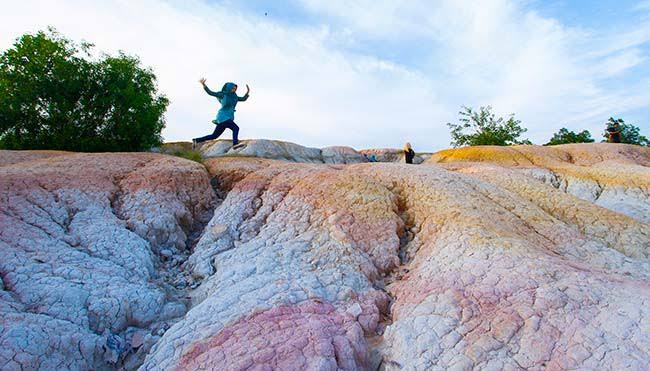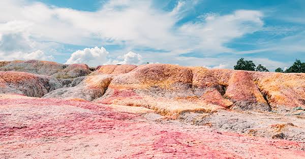 Nah, kombinasi inilah yang membuatnya terlihat seperti pelangi. Menariknya lagi, keeksotisanya semakin tampak karena retakan tanah mengering berpadu indah dengan birunya langit menjadikannya sangat cocok dijadikan lokasi hunting foto.