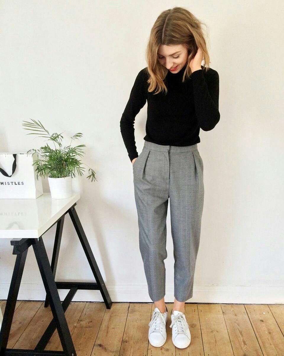 Tidak hanya untuk pria saja, kombinasi celana abu-abu dengan baju hitam juga bisa cocok untuk dipakai oleh wanita. Perpaduan keduanya akan membuat kalian tampil minimalis. Menariknya lagi, kombinasi keduanya juga bisa dikenakan untuk acara formal lho, tinggal pakai kemeja.