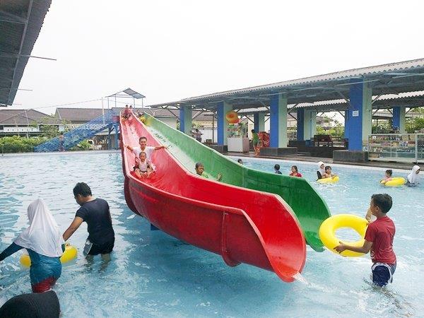 Ketika memasuki kawasan tersebut, pemandangan yang pertama kali terlihat adalah kolam renang dengan berbagai wahana, seperti waterboom, kolam arus, air mancur, perahu bebek dan lain-lain.