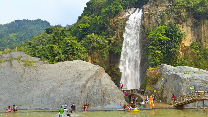 Jadi, jembatan tersebut merupakan satu-satunya jalan untuk menuju air terjun jika tidak ingin basah kuyub melewati tengah kolam pemandian.