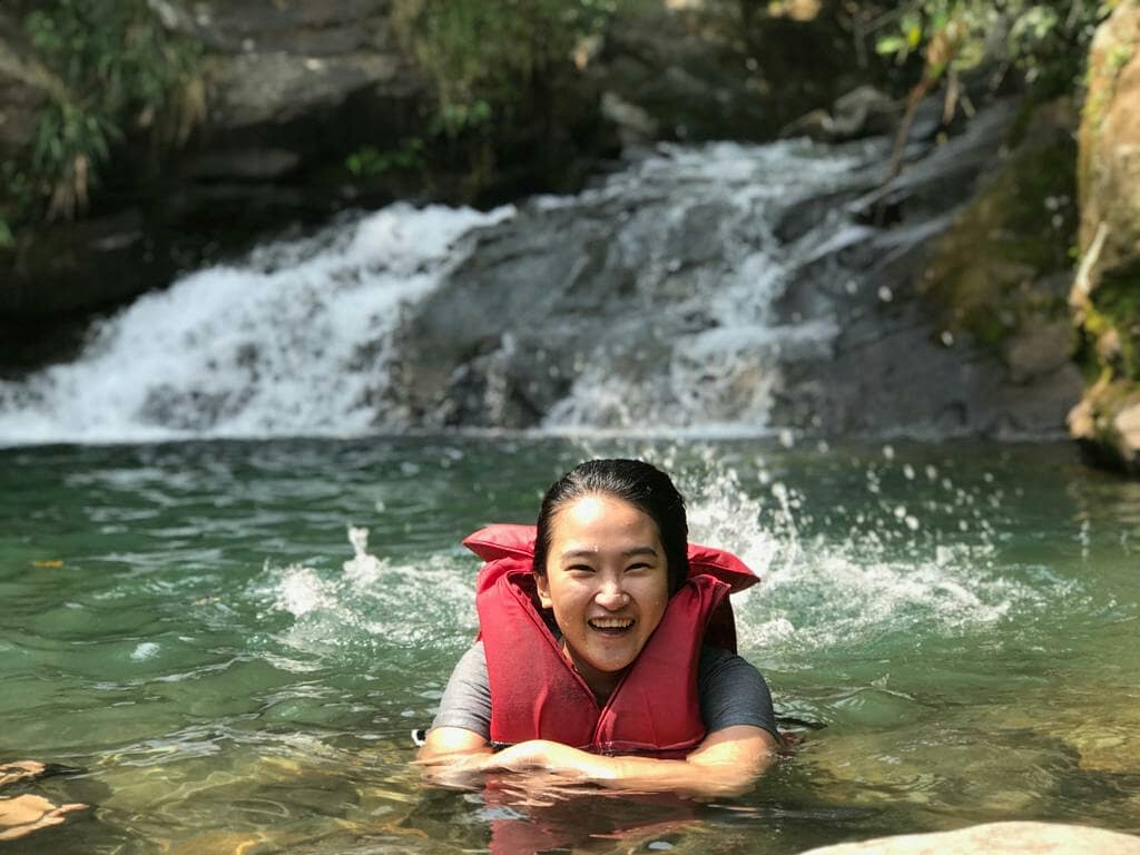 Kedua, membawa perlengkapan outdoor, termasuk alas kaki. Kostum juga perlu disesuaikan dengan keadaan cuaca dan kegiatan yang hendak dilakukan di air terjun tersebut.