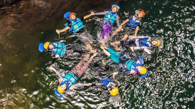 Salah satu syarat untuk melakukan body rafting adalah membawa rombongan minimal 10 orang.