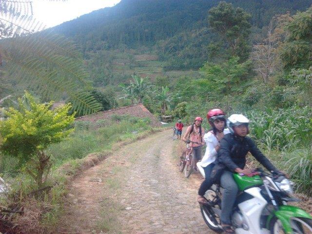 Namun, dari sini pun nantinya tetap akan melalui jalan pedesaan dengan jarak tempuh sekitar tujuh kilometer sampai lokasi curug.