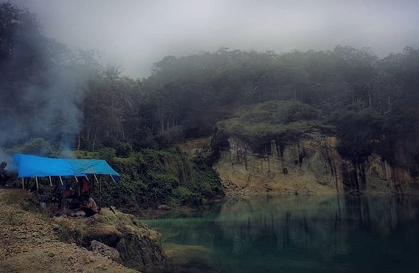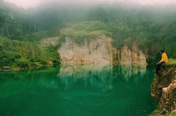 Cekungan bekas penambangan pada akhirnya terisi air hujan. Khususnya saat musim hujan, sampai terbentuk sebuah kolam yang kita sebut dengan danau berwarna hijau kebiruan, dikelilingi hamparan tebing batu putih menjulang tinggi. Pemandangan menakjubkan.
