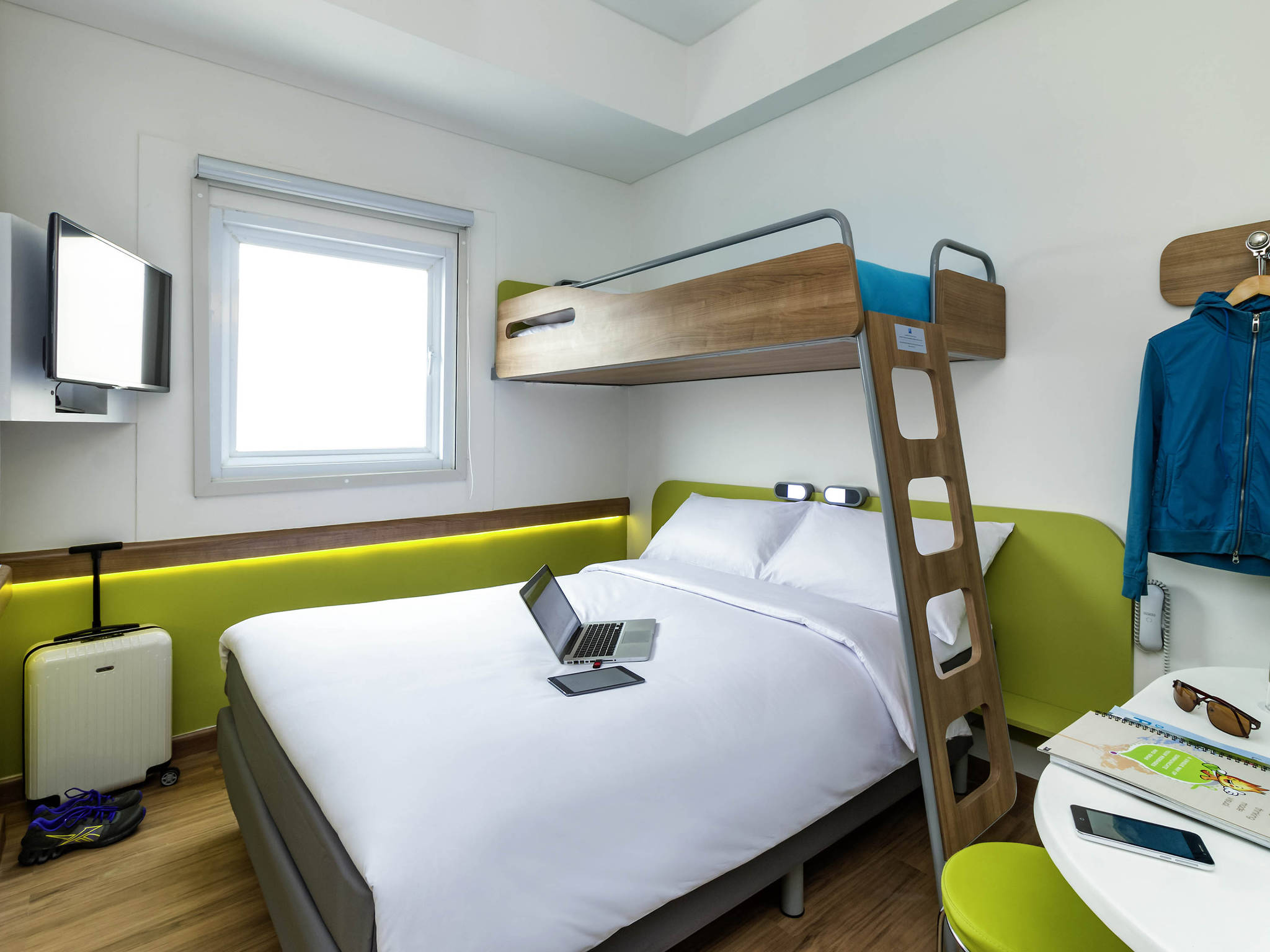 Selanjutnya, ada tipe kamar Bunk Bed. Sesuai dengan namanya, tipe kamar yg satu ini punya ranjang tingkat di dalamnya. Ada satu double bed di bawah dan ranjang ukuran single di atasnya yg bisa kamu naiki dengan tangga.