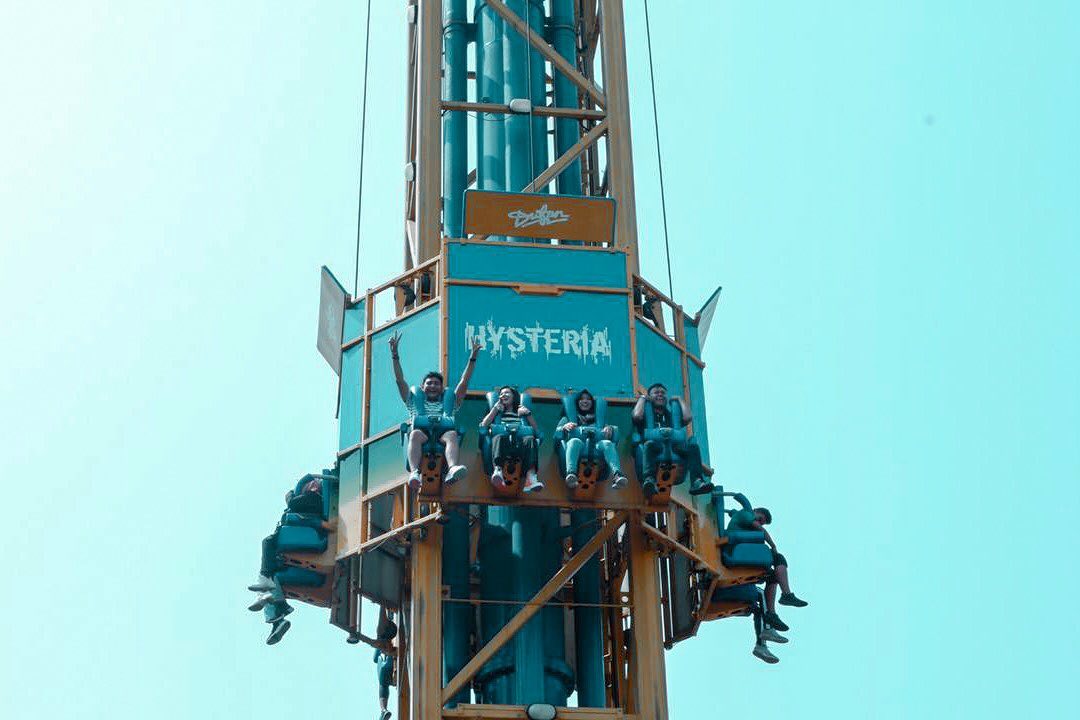 Wahana lainnya yang juga memacu adrenalin adalah Hysteria. Sesuai dengan namanya, mereka yang menikmati wahana ini bakal dibuat berteriak-teriak secara histeris.