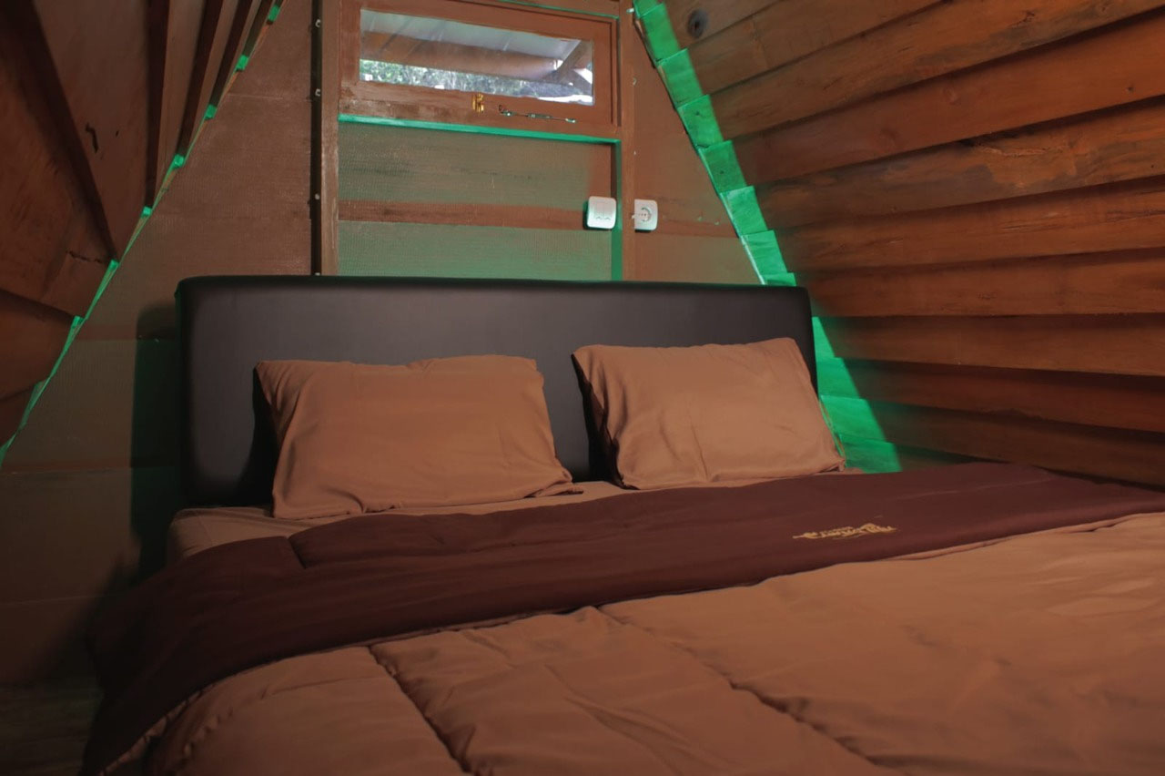Untuk tipe Mini Camp, di dalamnya ada kasur ukuran queen bed yang cukup nyaman. Di sisi lain, tipe Family Tent difasilitasi dua unit matras dan empat sleeping bag.