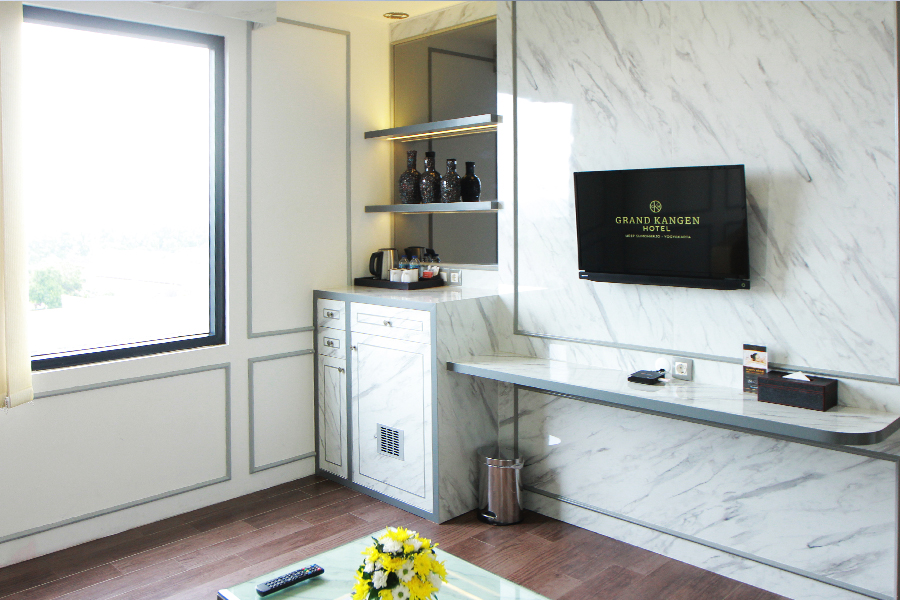 Fasilitas lain yang bisa kamu nikmati di dalam kamar meliputi televisi LED, pendingin ruangan, pembuat teh dan kopi, sandal hotel, meja kerja, kulkas kecil, air mineral kemasan, dan sebagainya.