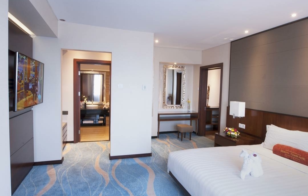 Bicara soal fasilitas, tiap kamar di Gumaya Tower Hotel yang didesain dengan elegan telah didukung perlengkapan modern seperti AC, TV layar datar, akses WiFi gratis, minibar, alat pembuat teh atau kopi, kamar mandi pribadi plus shower & bathtup dan layanan kamar 24 jam.