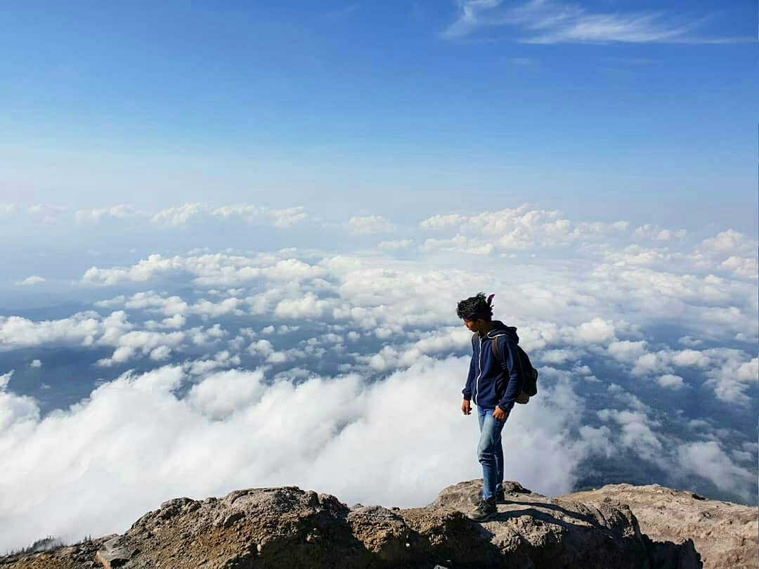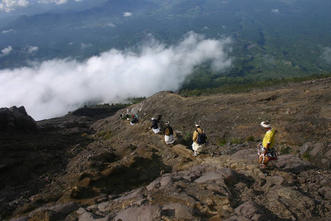 Ketinggian ini sudah membawa kita berada di atas awan dan dapat menyaksikan keindahan kawah Gunung Agung.