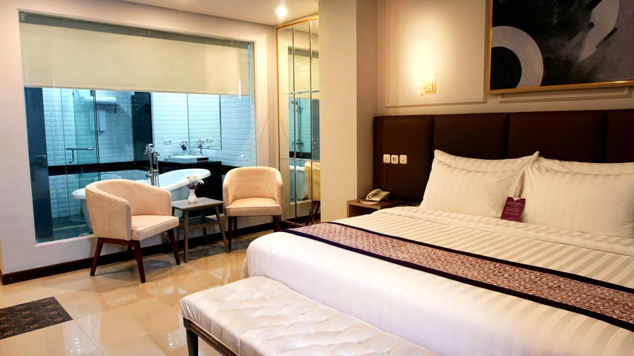Dengan 85 unit kamar yang masing-masing dilengkapi fasilitas mumpuni, dan mengusung tema modern kontemporer, kamu akan disambut dengan keramahan dari setiap karyawan serta sensasi kenyamanan seperti sedang berada di rumah.