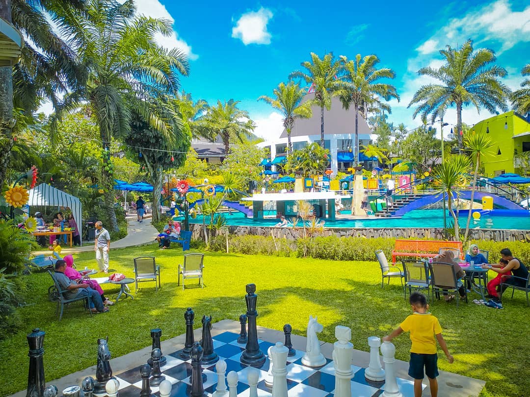 Untuk fasilitas umumnya pun cukup beragam, dari mulai villa, rumah makan hingga taman bunga. Sementara kamarnya sudah dilengkapi dengan AC, mini bar, resepsionis 24 jam, wifi gratis, kolam renang, sauna dan pusat kebugaran atau pijat refleksi.