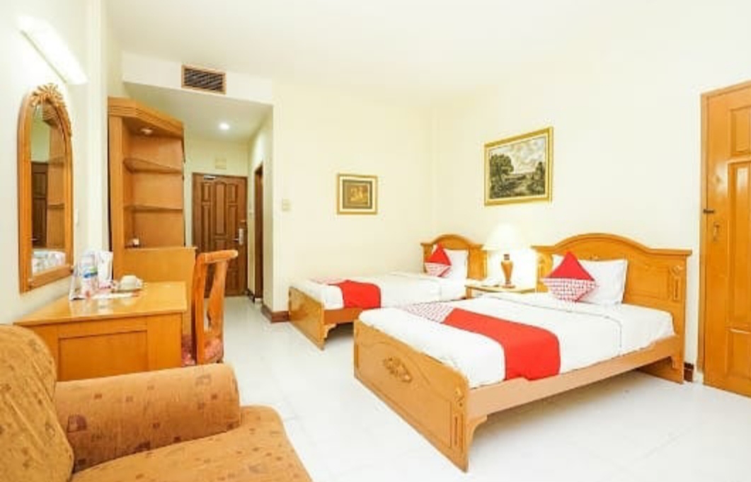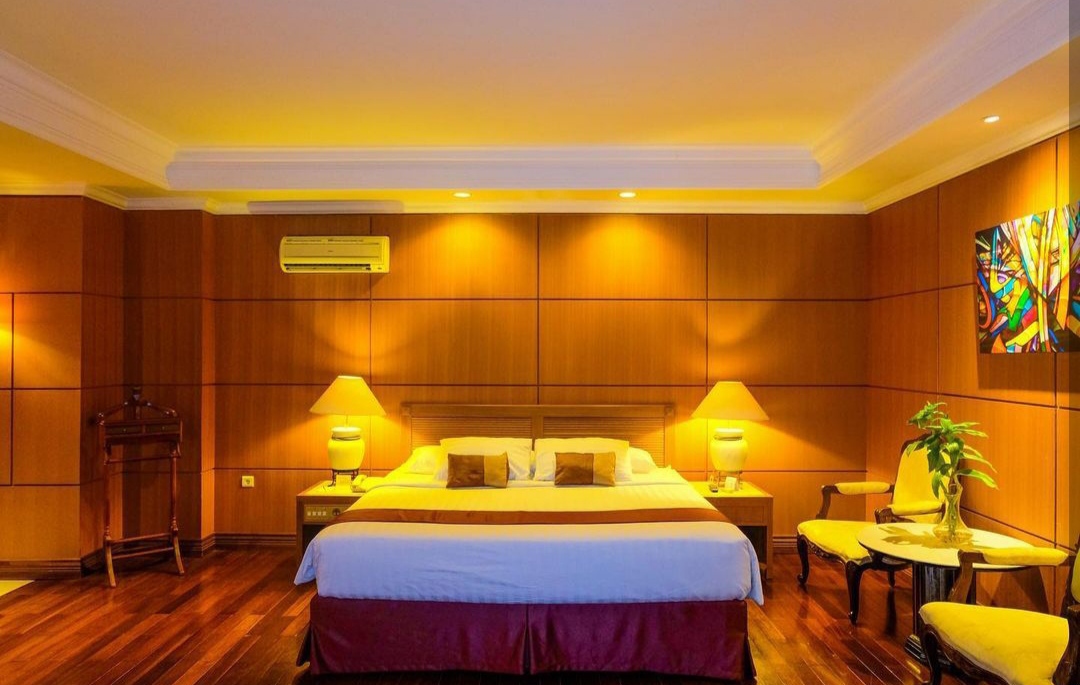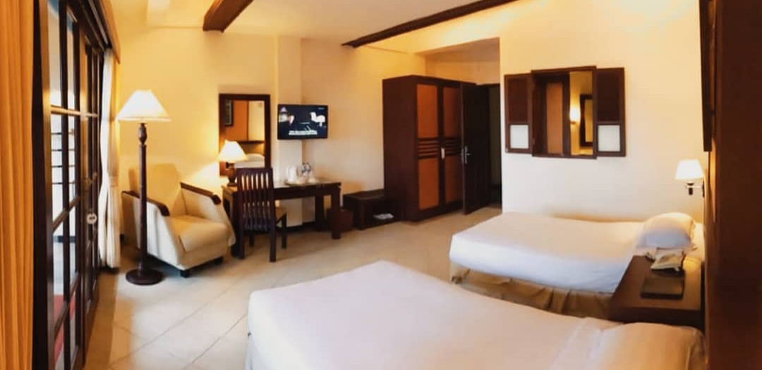 Dalam setiap kamarnya telah dilengkapi dengan berbagai fasilitas berupa TV, brankas, meja, kamar mandi plus shower. Menginap disini, kamu juga bisa menikmati sederet sarana penunjang lainnya seperti area parkir, wifi, bar, kolam renang, taman, dll.