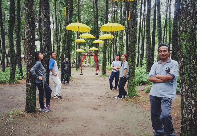 Salah satu keunikan yang dimiliki oleh obyek liburan ini adalah area spot foto selfie yang merata di semua lokasi hutan tersebut. Di sini sudah disediakan rumah pohon dengan ukuran yg bervariasi.
