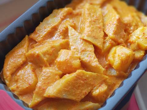Untuk membuat sajian mirip gulai patin ini sangat mudah, dimana ikan dibaluri tepung sagu dan bawang putih kemudian dibentuk seperti pempek lenjer lalu dimasak hingga matang. Setelah itu disajikan dengan siraman kuah santan bercitarasa gurih.