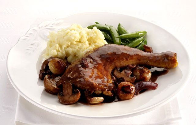Coq Au Vin adalah salah satu makanan khas Perancis berbahan dasar kaki ayam yang kemudian dimasak dengan anggur merah dalam waktu lama untuk mendapatkan tekstur daging lebih lembut.