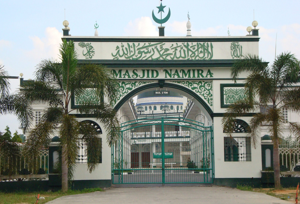 Gerbang utamanya sekilas menyerupai Arc de Triomphe yang ada di Paris. Semakin terlihat cantik dengan keberadaan kaligrafi Arab di bagian dindingnya. Tempat ini selalu ramai karena letaknya cukup strategis.