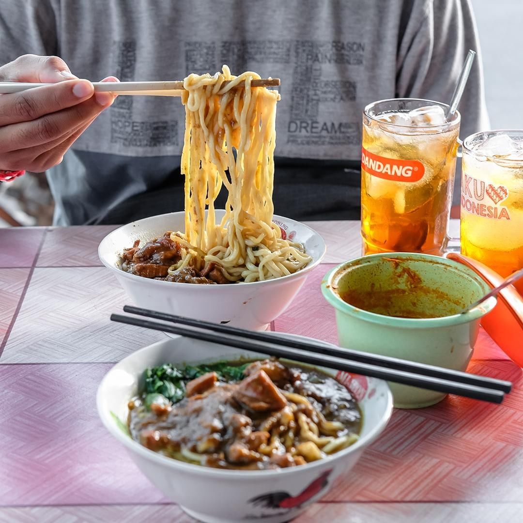Bukan hanya karena porsinya saja, mie ayam tumini juga terasa lebih spesial karena memiliki tekstur mie yang lembut dan kenyal dengan ukuran besar.