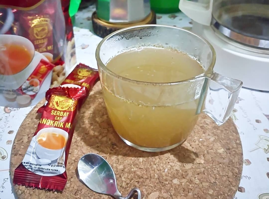 Namanya ialah serbat jahe. Menurut resep, minuman tersebut bahan utamanya terbuat dari campuran bubuk jahe serta gula merah. Biasanya dijual dalam bentuk kemasan yang siap untuk diseduh.