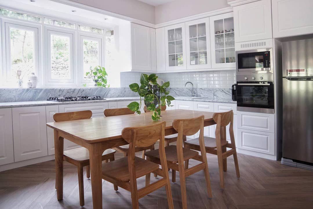 Tentu saja, ada meja makan yang bisa digunakan untuk berkumpul sambil menikmati santapan saat pagi, siang, maupun malam hari.