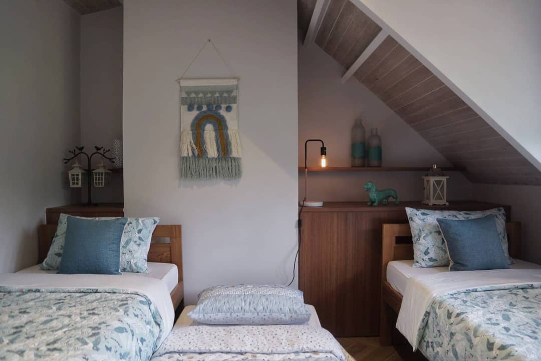 Tidak hanya yg ada di kamar utama saja, ada satu kamar mandi lainnya yg letaknya di luar. Untuk kamar tidur, ada tambahan dua lagi, satu difasilitasi tiga single bed dan satu lagi memiliki bunk beds yang bisa memuat empat orang.
