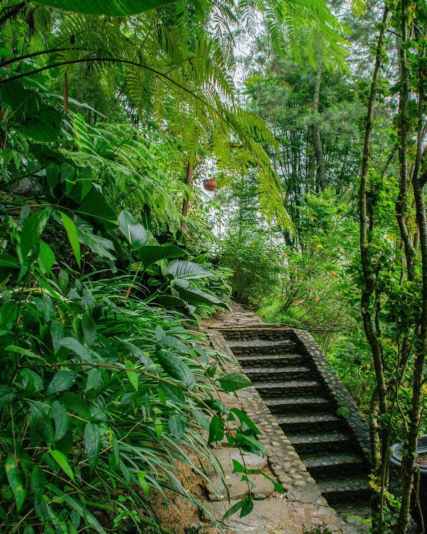 Lingkungan sekitar villa ini juga masih sangat asri karena dikelilingi hutan yg rimbun sehingga udaranya sangat sejuk. Untuk menuju ke villa ini, kamu harus melalui jalanan yang berbatu, beberapa anak tangga, serta jembatan kayu.