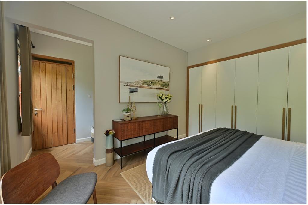 Jumlah kamar tidur di dalam villa ini adalah sebanyak tiga ruangan. Kamar utama atau master bedroom memiliki king size bed untuk dua orang.