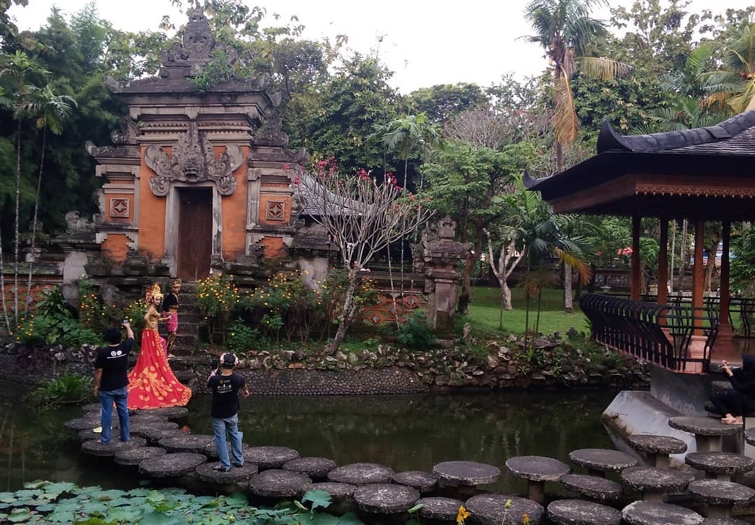 Keindahan arca, relief dan ornamen yang menghiasi pilar yang berpadu dengan bias cahaya kolam, membuat tempat ini kerap digunakan untuk wedding party.