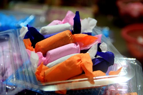 Penganan ringan tersebut biasanya dibungkus menggunakan kemasan warna-warni agar semakin tampak menarik dan menggoda.