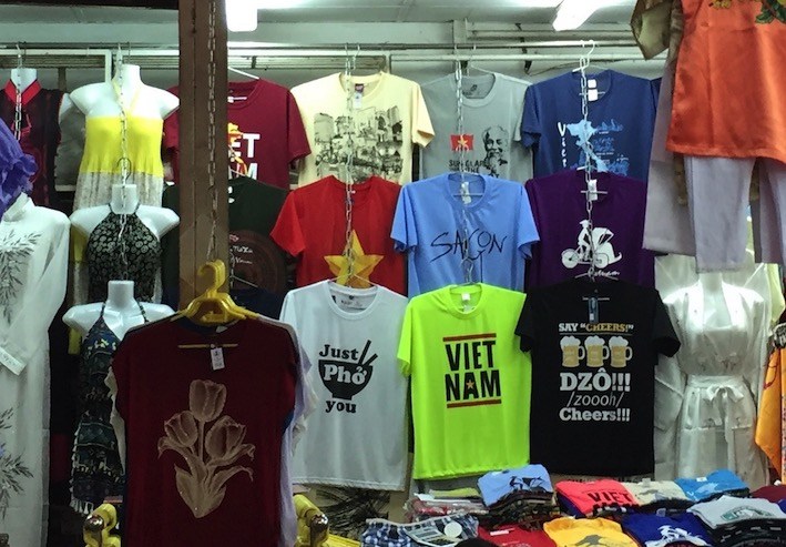 Kaos ini sangat mudah ditemui di setiap sudut kota dan model paling banyak diburu adalah yang bertuliskan “Saigon Vietnam”, “Tiger Beer” serta “Good Morning Vietnam”.