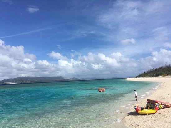 Pulau berbentuk bulan sabit ini berjarak 15 menit dari pelabuhan Toguchi dan menjadi salah satu tempat favorit untuk pecinta diving juga snorkeling.