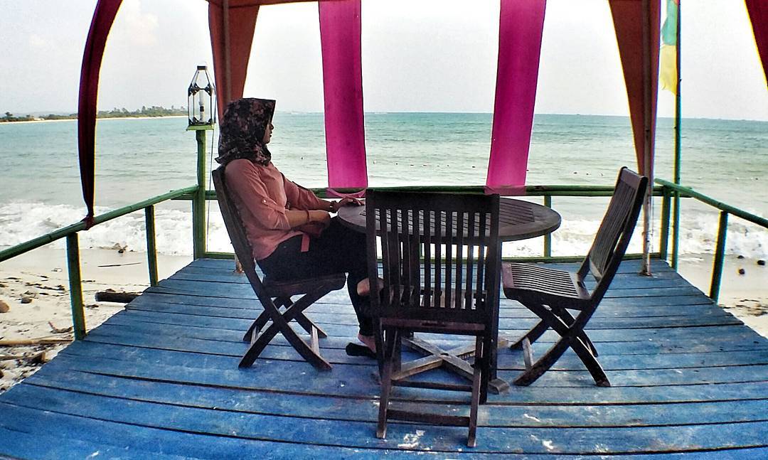 5. Pecinta selfie dan para pemburu foto, silakan untuk menikmati fasilitas balkon serta meja yang ditata sedemikian rupa di tepi pantai.