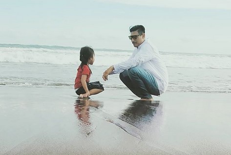 Cahaya yang keemasan membuat pasir hitam besinar syahdu dengan apik bertemu hamparan air laut yang terlihat keperakan ditimpa cahaya senja.