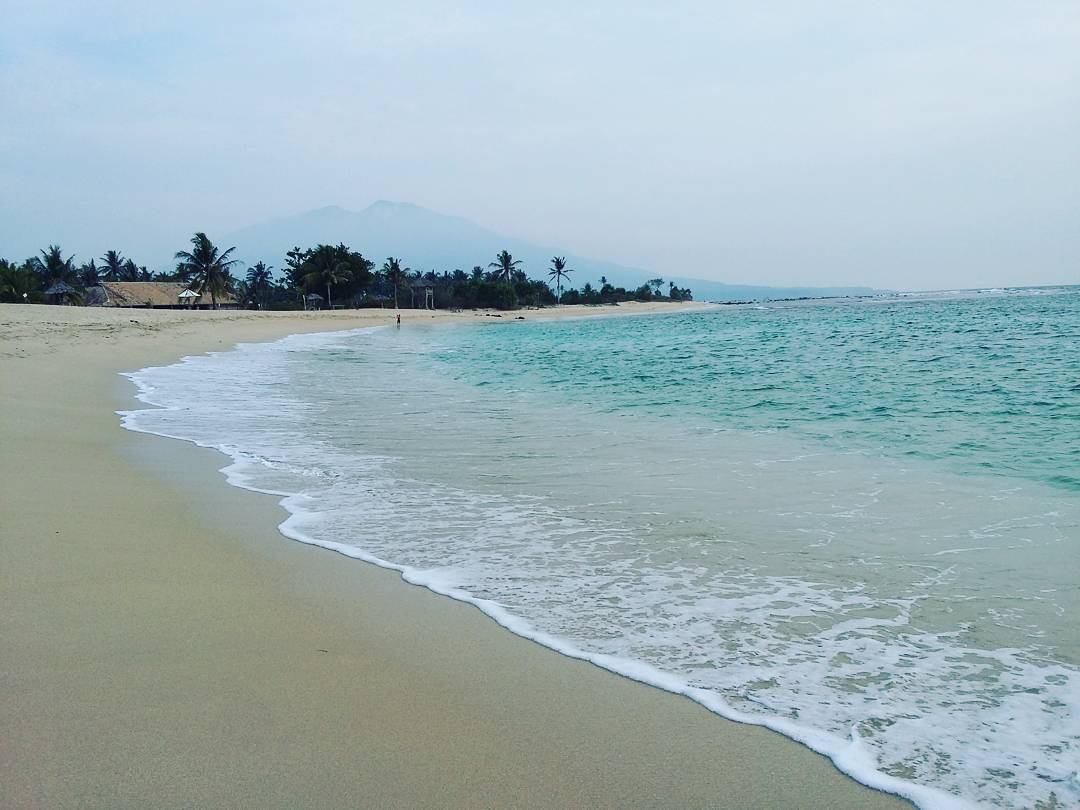 Hamparan pasir berwarna putih dan halus membuat wisatawan betah serta nyaman berada lama-lama disini.