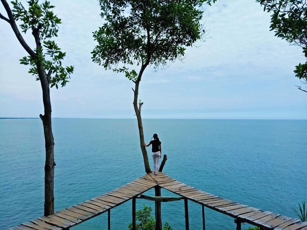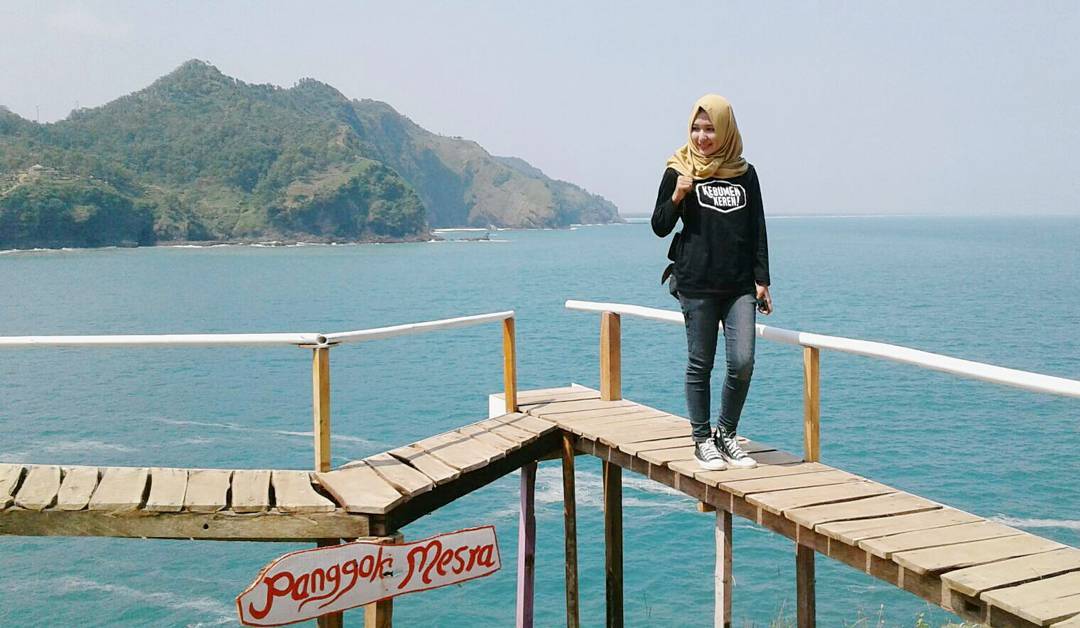 Spot foto yang paling hits di Pantai Lampon saat ini adalah jembatan love. Banyak para pengunjung yang datang kemudian mengambil foto disana.