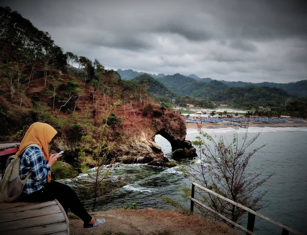 Dari jembatan ini kamu bisa melihat hamparan laut yang luas dari Pantai Lampon maupun Pantai Pasir. Kedua pantai tersebut memang sangat dekat dan hanya dipisahkan oleh bukit besar.
