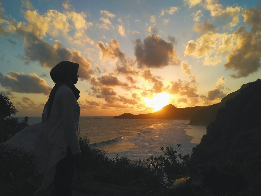 Tak jarang pengunjung yang bahkan sengaja datang di sore hari hanya itu melihat senja di balik bukit Pantai Lampon.