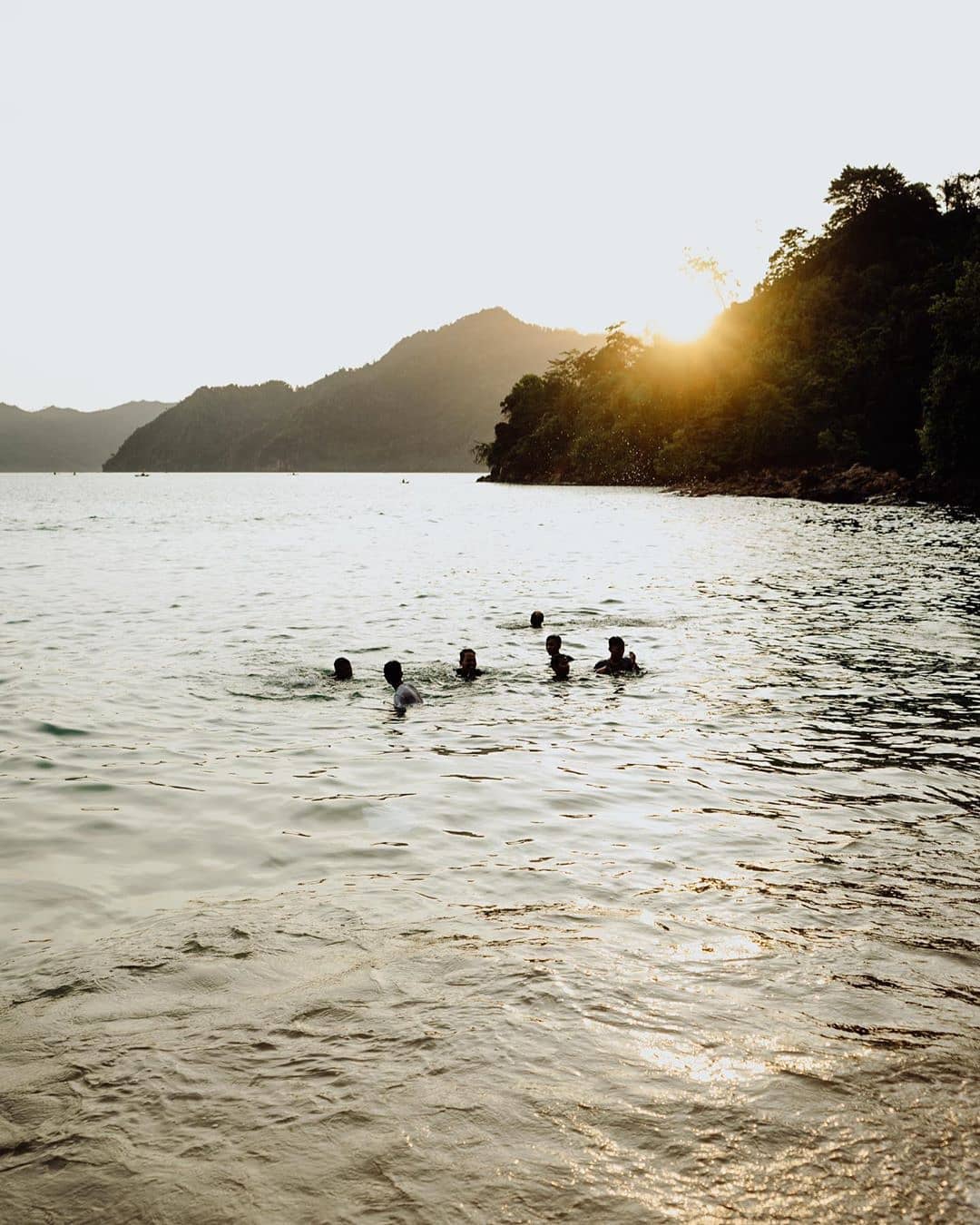Aktivitas paling umum ketika berlibur di pantai ialah berenang. Di sini, anda bisa berenang dengan sangat nyaman karena gelombang lautnya sangatlah tenang.