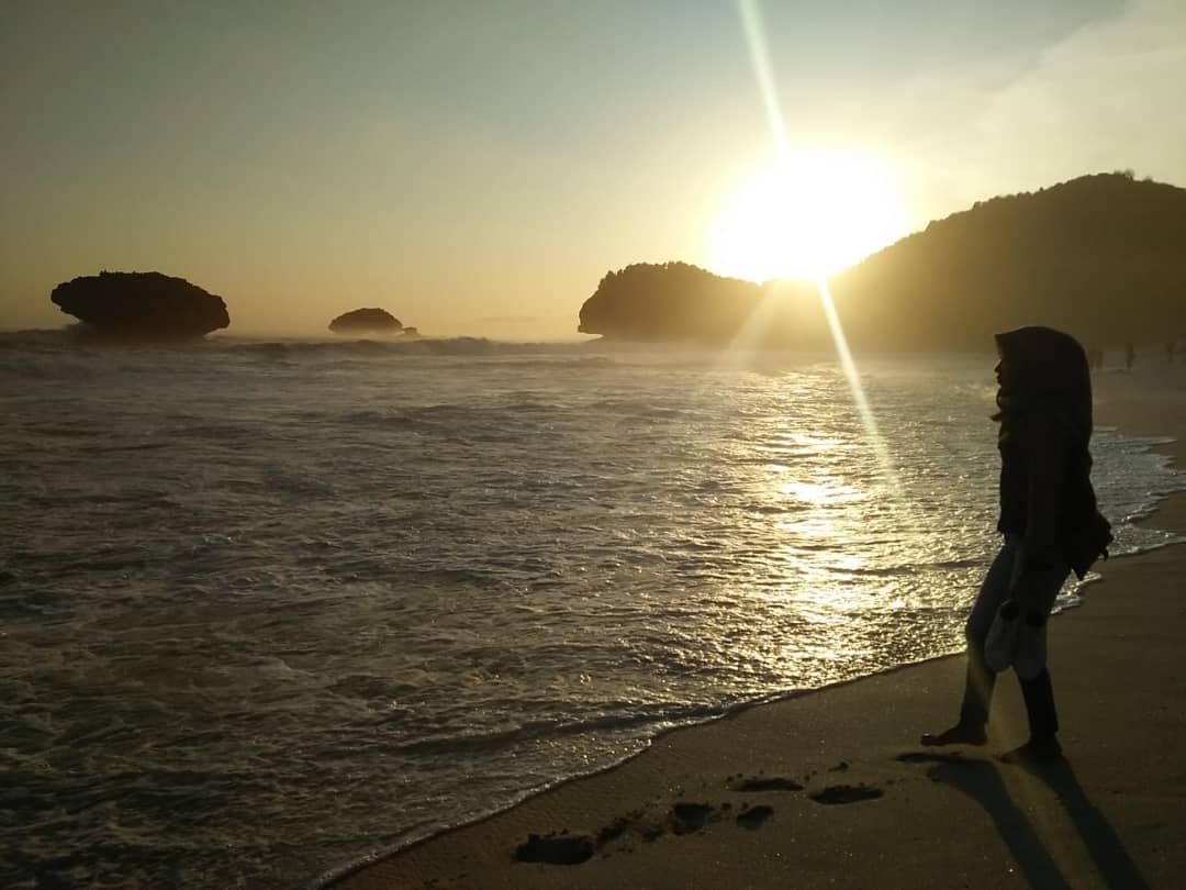Selain menikmati keindahan Pantai Srau, Anda juga bisa menyaksikan panorama sunset di sini.